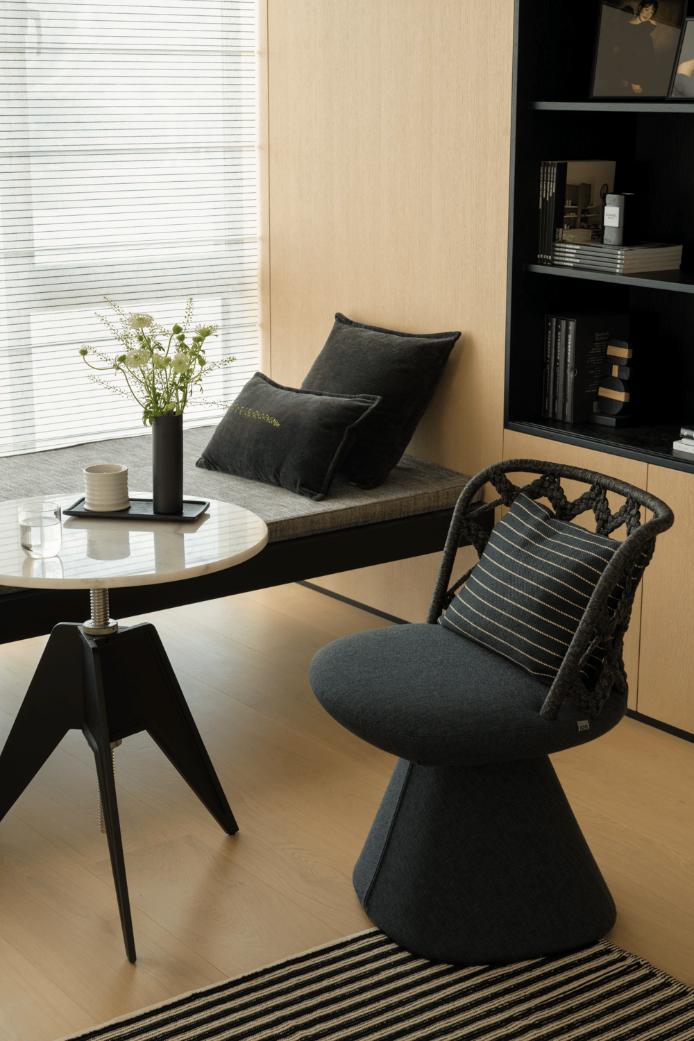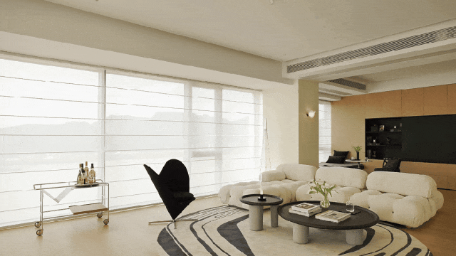 约5米超大面宽横厅,耸立“地方公园+科创”上海双核之境,江景成为空间的天然布景。玄关以极简姿势糊口叙事,